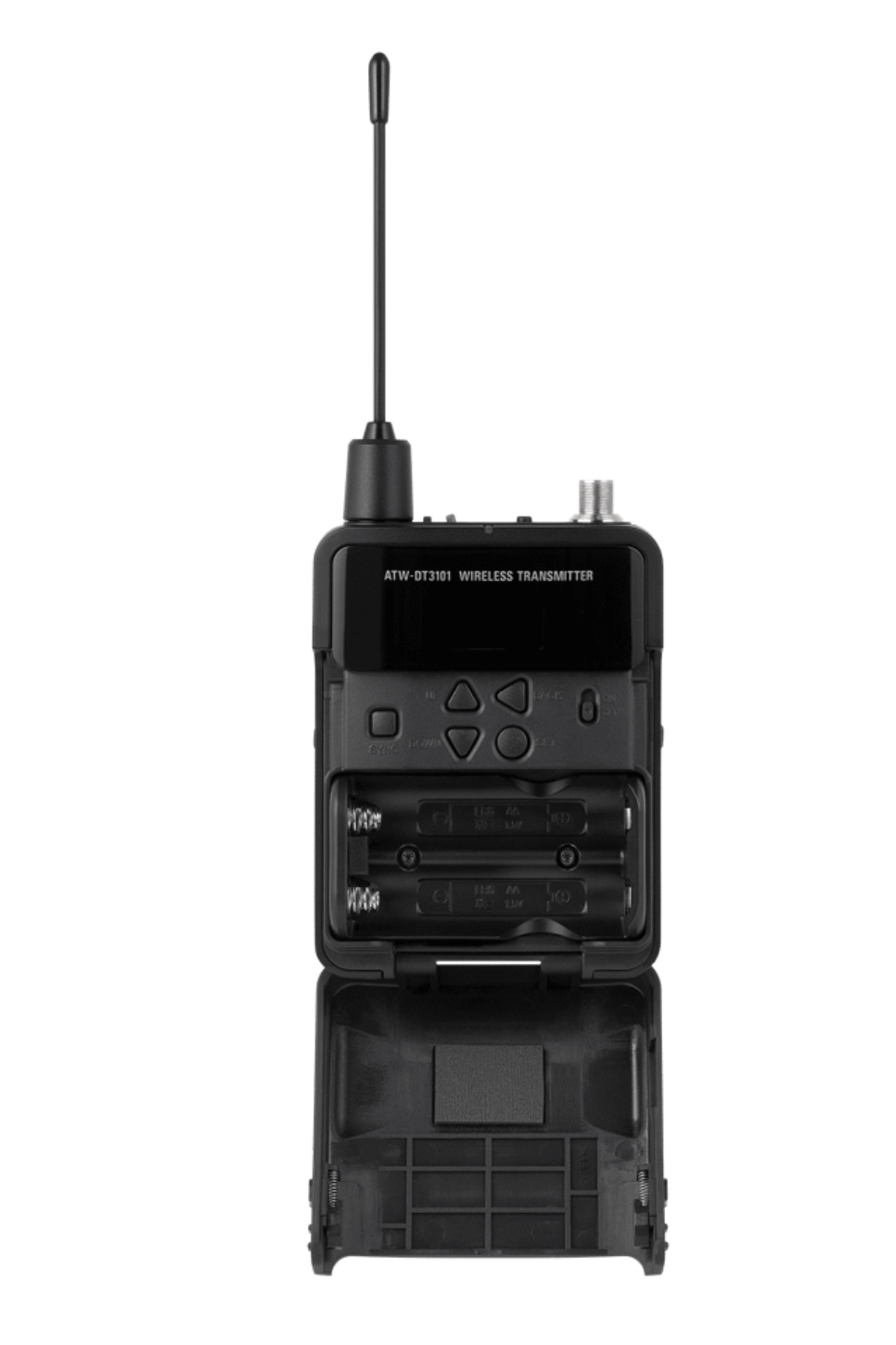 ATW-DT3101 body pack -lähettimessä on nelinapainen lukitusliitin ja 80Hz/120Hz/160Hz ylipäästösuodatin. Body pack -lähettimessä on myös sama käsilähettimistä tuttu monitoimipainike.