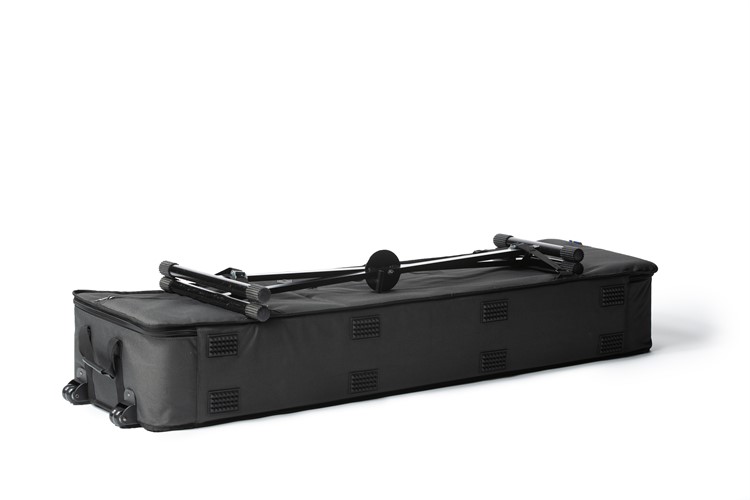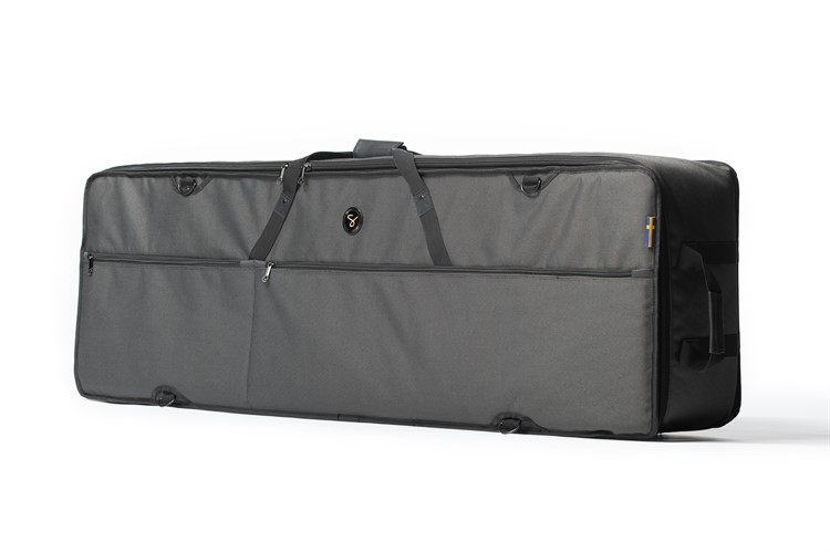 Hyvin pehmustettu puolikova suojapussi täyspitkille kosketinsoittimille. Suojapussissa on paikka ulkopuolella myös kosketinsoitin- ”ständille”. Edessä taskut pedaalille, sekä kaapeleille. Pyörillä kulkeva suojapussi on mukava kuljettaa paikasta toiseen.