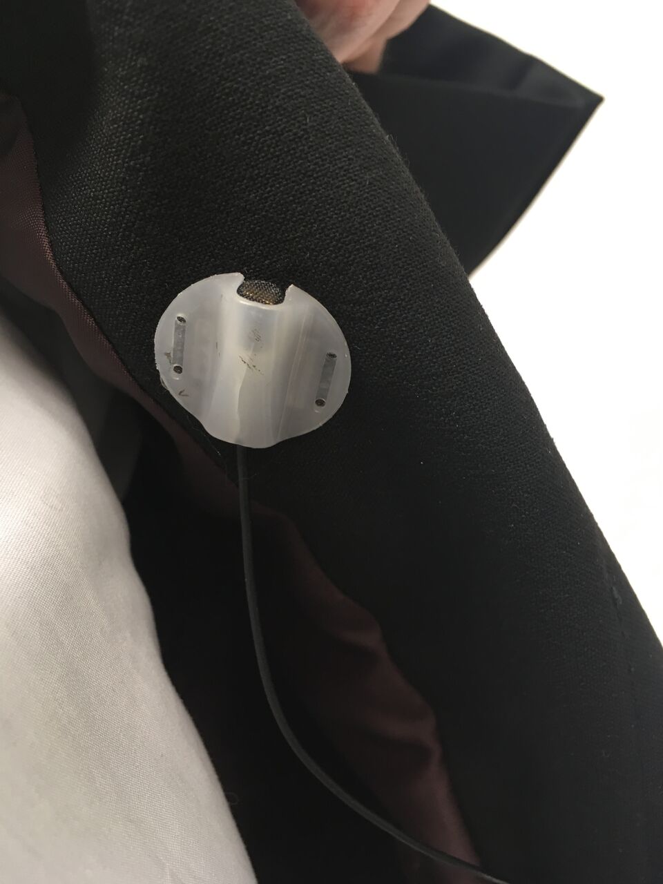 ”Moleskin” teippi nappimikrofonin piilotukseen.